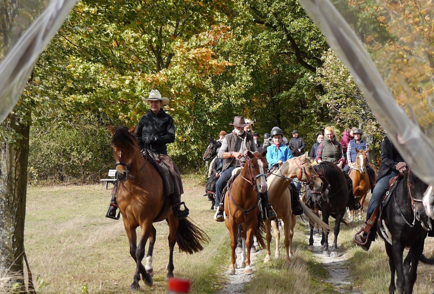 Unsere diesjährige Veranstaltung hätten wir uns natürlich bei schönerem Wetter gewünscht. Trotzdem waren wir dankbar für den Regen, den die Natur so dringend braucht. Die Bilanz mit etwa 25 Einzelreiter/innen, sowie Kutsche und Planwagen, also rund 30 Pferden, kann sich dennoch sehen lassen. Darunter wieder zu aller Freude, die am weitesten angereiste Reiterin Anna-Magdalene Sartern aus der Nähe von Öhringen/Baden-Württemberg.